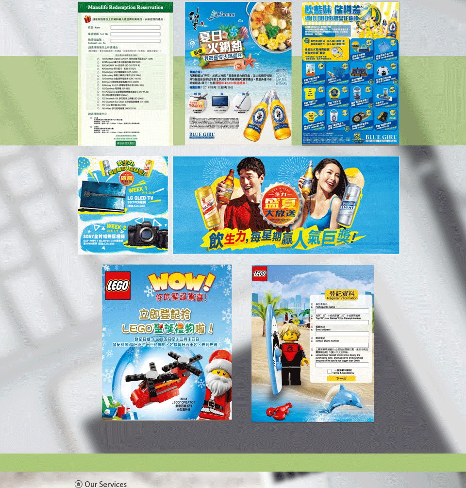 協助不同客戶利用ONLINE進行電子行銷,由策劃、執行、推廣、銷售,我們亦能提供當中服務。 | |||||||||||||||||||||||||||||